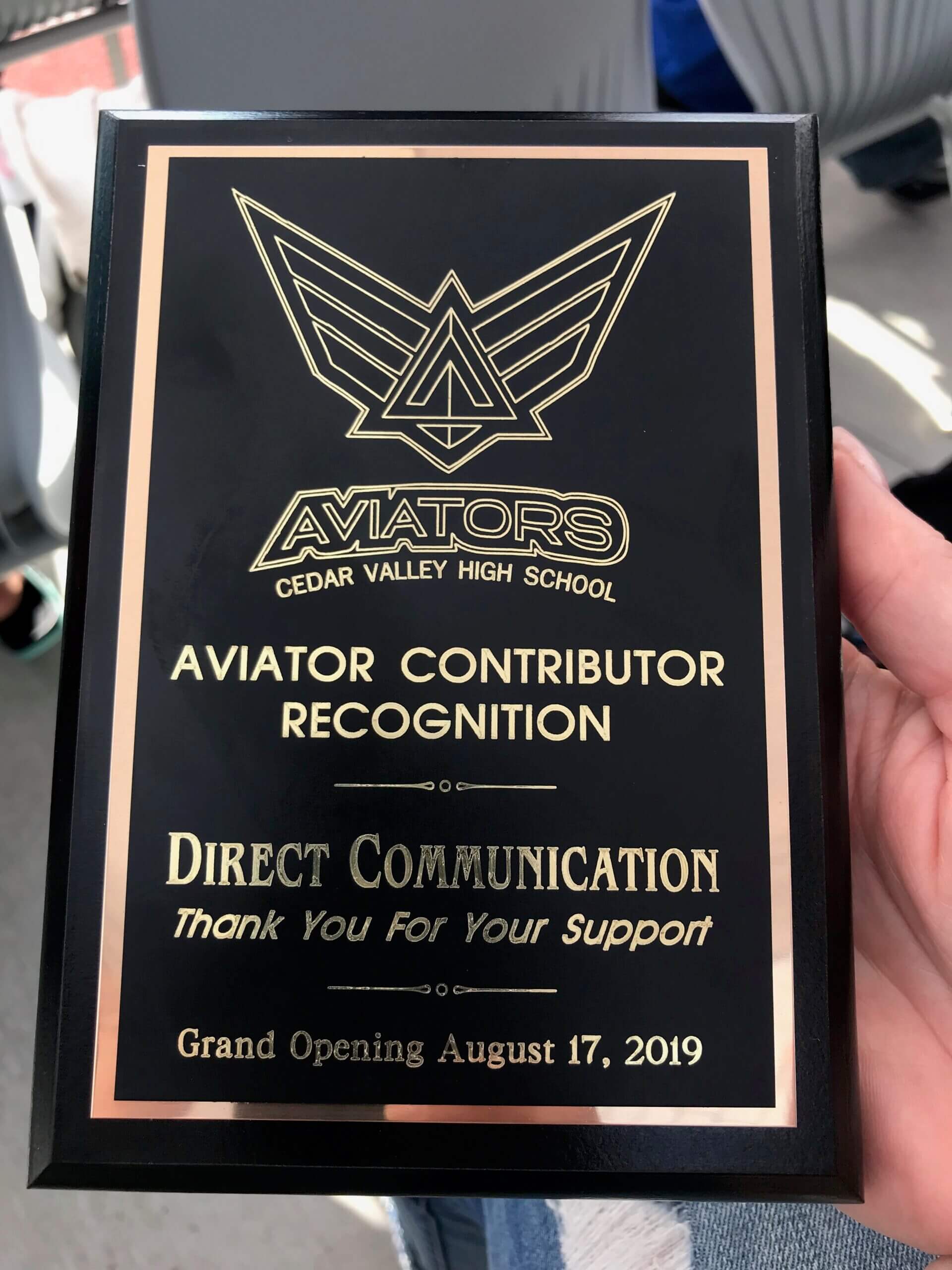 A major community milestone in 2019 was the launch of Direct Communications’ sponsorship of Cedar Valley High School. This partnership reflected a broader commitment to supporting local education and investing directly in the community the network serves. The sponsorship helped reinforce a core message: when customers choose a local fiber provider, their support stays local—funding both infrastructure and community institutions.